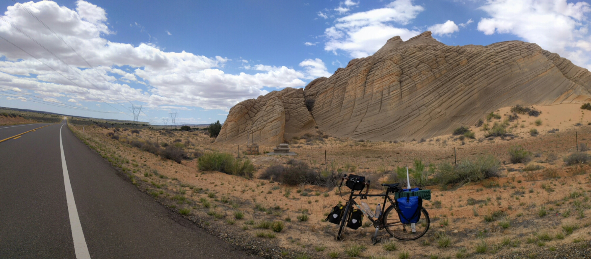 It took me about 15 minutes to push upwind and uphill to Speedy’s truckstop where, as I parked my bike, a guy in a minivan sidled up and asked “Hey, where you headed? Where are you staying tonight”. Uh oh, I thought, this is exactly how Katrina’s friend’s story started, the one that ends with him feeling obliged to get out of Navajo Nation rather than bedding down, which for him entailed doubling back. For me, it would entail fighting the ferocious evening headwind for another 15 miles, and at nearly 90 on the day (second daily milage record this tour in as many days), and my experiment with the pedals a conclusive failure that badly exacerbated my Achilles tendonitis, this prospect seemed excruciating. So, I responded somewhat cagily, saying “Um, that way”, pointing South.