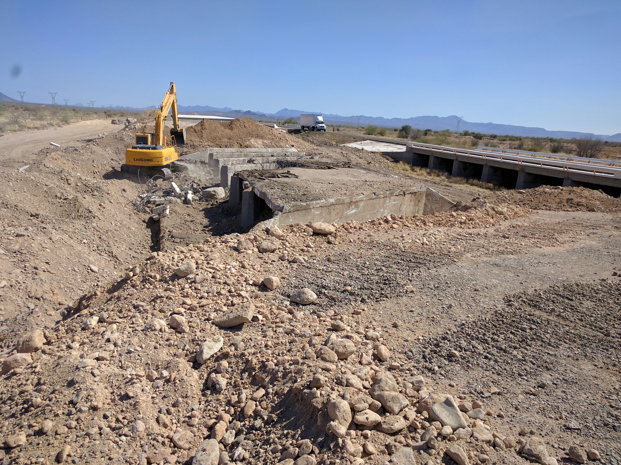 Having driven the route the day before, I have some idea what lay ahead. Ever since my slight mis-adventure avoiding the highway, and traversing private ranch land the day I got into Hermosillo and met Moises, I’ve been reluctant to take roads that are secondary according to Google Maps. Thus, highway 15 is my only option, along with the only option for cars and trucks travelling North to South on this side of the country. It is generally two lanes per direction, separated by a wide median, but under perennial reconstruction. Sections being reconstructed will have 1 of the directions’ two lanes closed off, with traffic diverted to the other half, which becomes a non-separated, often shoulder-less, one lane per direction highway. This is the worst of all possible roads for cycling, as you have to take the one and only lane from every vehicle sharing your direction. So, the far more prudent choice is to ride the side under construction. Sometimes this means several miles of several lanes of brand new concrete to yourself, in which case you can pretty much ride with your eyes closed, or focused on your phone. Often it means passing construction workers and their large equipment, which itself commonly entails taking the alternate dirt road around the construction of a small bridge or other project. I’ve been at this for five days now, and I dare say, I’ve gotten pretty good at navigating this particular obstacle course. When the concrete slabs end, there’s often a 1 foot drop, along with 1 foot spaced sections of 1 inch diameter steel rods sticking a foot out of the side of the drop from about halfway up. The most efficient thing to do here is to fly off the edge, pulling up on the handlebars so that you clear the rods and both wheels land at once, minimizing impact shock to the loaded bike. But sometimes there’s a makeshift gravel ramp covering some or all of the edge, or there’s a pit or a sandtrap just after the edge, and in this case, a flying dismount is extremely ill advised. It’s impossible to know for sure until you’re within a few feet of the edge, so it’s important to be going fast enough to clear the rods, but not so fast that you can’t stop.