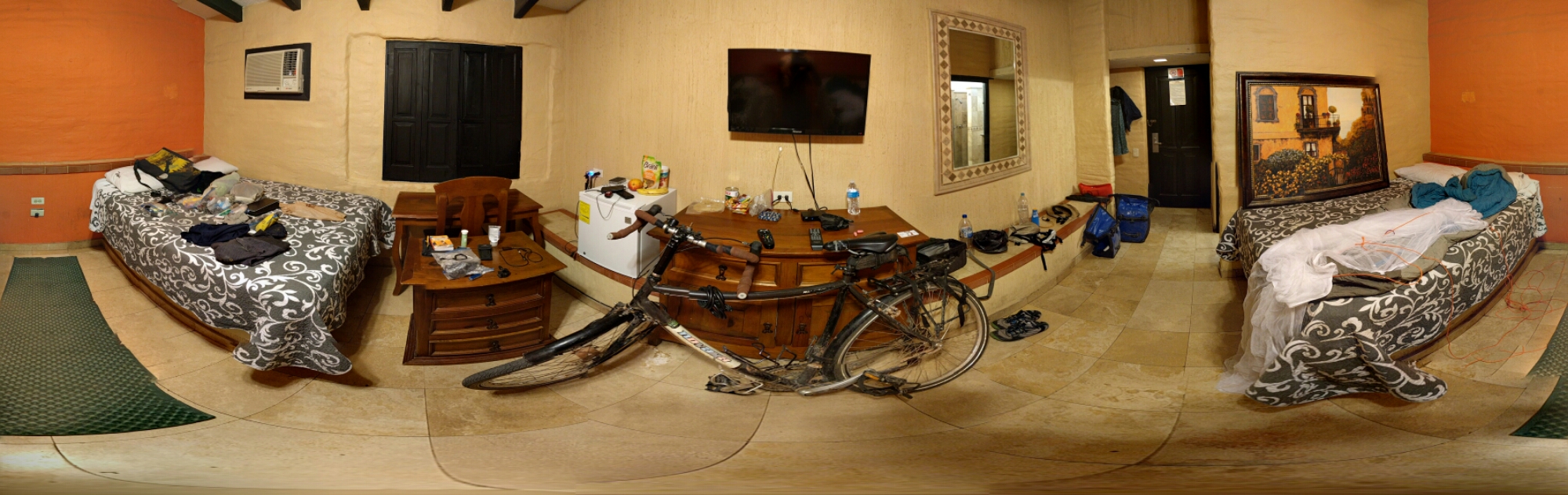 The third night I took a $27 room at a nice, resort-ish hotel with an outdoor pool. I stayed up until 3am attending to a mental to-do list that included sewing stuff, minor bike repairs/adjustments, low-key-ifying my rig (no more cell phone mount on handlebars or USB attachment to generator hub) and doing a dry-run setup of my bug net. The hotel was right outside of Navojoa, the town South of which the US DoS’ travel advisory stops and its travel warning begins. I wonder if because it’s on the edge of what is understood to be cartel territory that it’s such a pleasant, thriving, but low key town. I had a great time cruising around with my unloaded bicycle, going on my doomed mission to find an actual, physical roadmap, and buying supplies. There are lots of busy businesses that clearly cater to a local middle-class income, as opposed to Los Mochis (that I would get to the next day) that has a lot of flashy establishments and casinos and stuff.