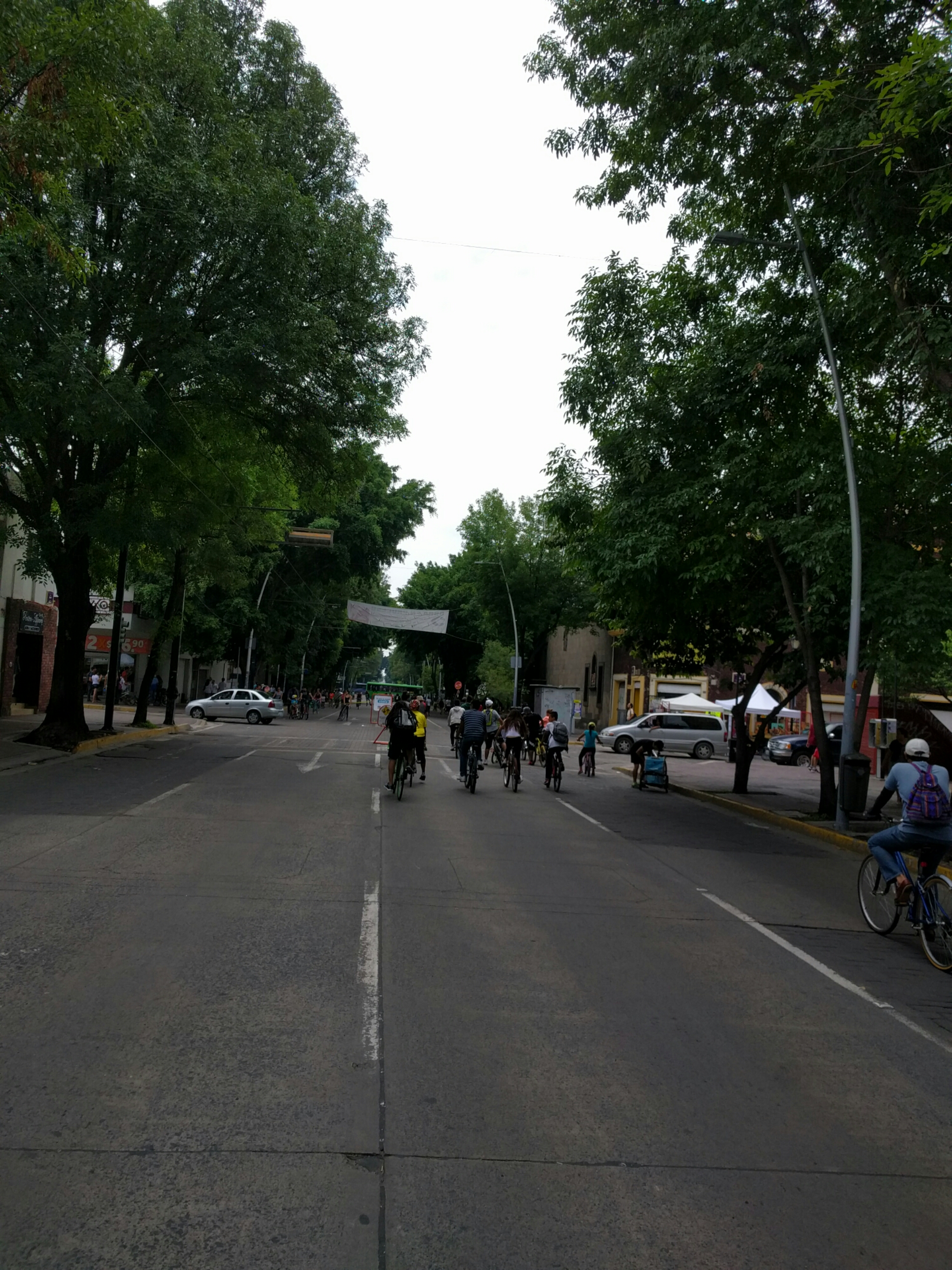 I’m floating towards where the highway that I’m going to take meets the edge of town when I notice a mass of bicyclists a couple streets over. I head to it and find that a major thoroughfare has been cordoned off from 8am to 2pm, according to the barriers used to do so, for bicycle and pedestrian traffic. There’s easily a couple thousand people on bicycles going in both directions, and when I inevitably make the acquaintance of someone who strikes up a conversation based on my loaded rig, I learn that this happens every Sunday. We ride for about 8 kilometers as he points out various transit projects in progress. As he parts way with me and the cordoned off area to head home, it terminates in Jardin/Calle Hidalgo, which is a series of plazas and pedestrian thoroughfares that are bustling with locals and tourists that are clearly making the most of a beautiful Sunday afternoon. I stop for some lunch and then hop on the highway and head out of town.
