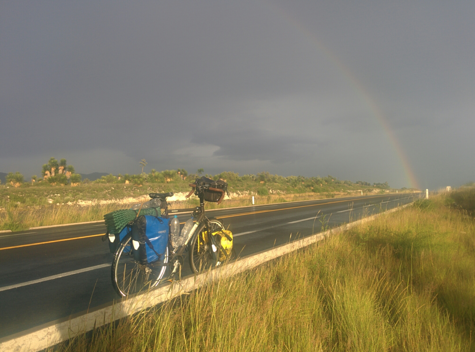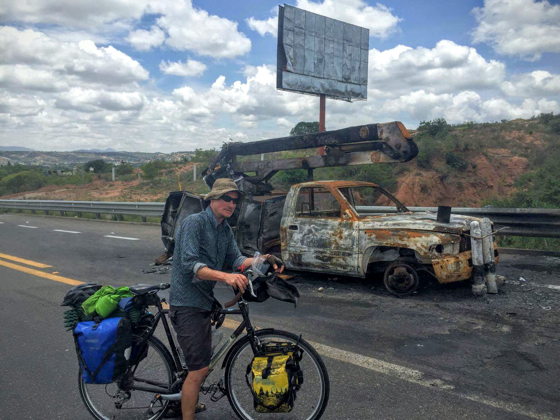 As I cycle out of Mexico City, I ponder the choices I’d made that set the stage for the adventure with the cops the night prior. Taken individually, I’m not particularly proud of some of them, yet without having made them, I wouldn’t have had the adventure, and it was a really good one. I’ve seen first hand how a shakedown happens, it expanded some limits, and I feel a lot better for it. When a security guard at the mini-mall sandwich stop comes in to ask me to move my bike, I’m not jumping to my feet. I’m respectful and courteous, but I’ve recently just expanded my limit on how much authority is exerted before I’m automatically deferential. So I ask “why?” respectfully, if not chipper-ly, before I comply. Through engaging to understand his reasoning (to stop blocking the sidewalk), we have a richer interaction.