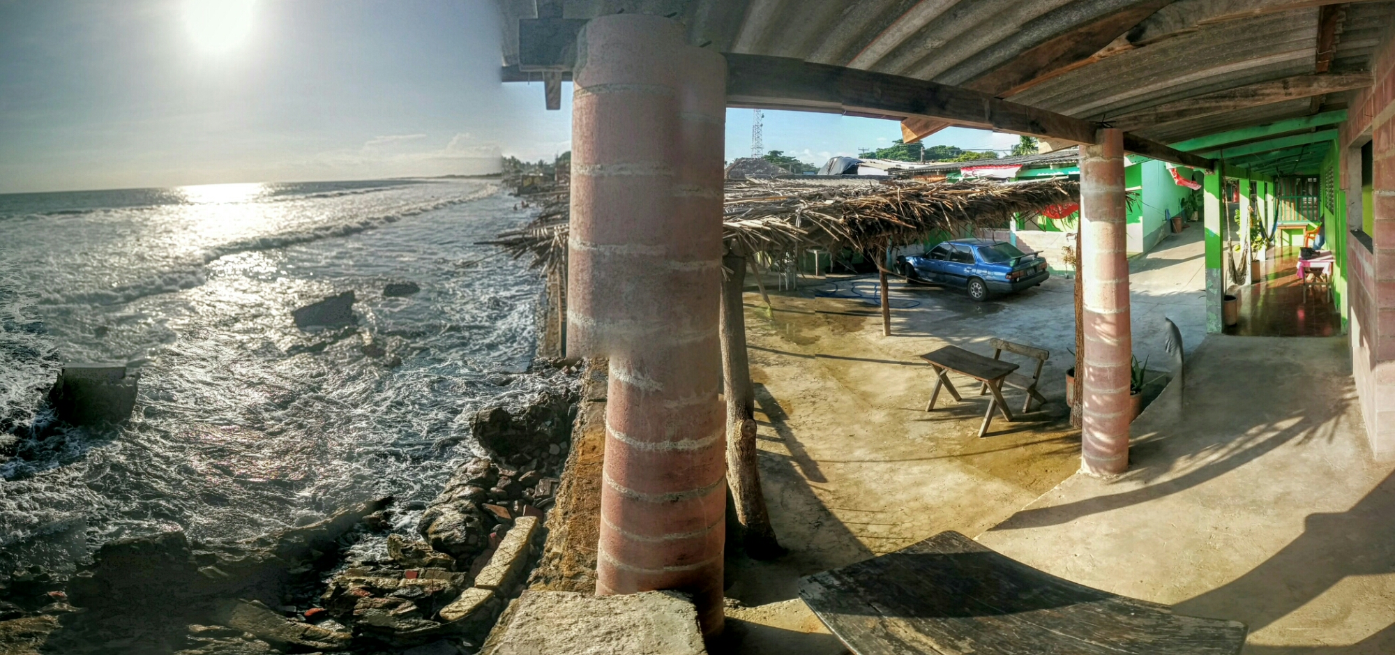 We take our only viable option, cycling up away from, then back down to the El Salvadorian coast, where we yo-yo up and down steamy seaside cliffs, and go through a series of 5 tunnels. We stop at a seaside town for lunch and inquire about places to stay for the night, as it looks like a big storm is rolling in with long, gutteral rumbles of thunder that last for 10-20 seconds each. Ryu’s english is very good, and while he doesn’t know as many spanish words as I do (with which to try and often fail to be understood when speaking them), he clearly understands spanish when it’s spoken better than I do, maybe owing to a mental/linguistic elasticity that he has and I lack, being that he’s already multi-lingual. While I have a hard time making any sense of what our waiter is saying, Ryu determines that he’s saying there’s no rooms available for this evening.