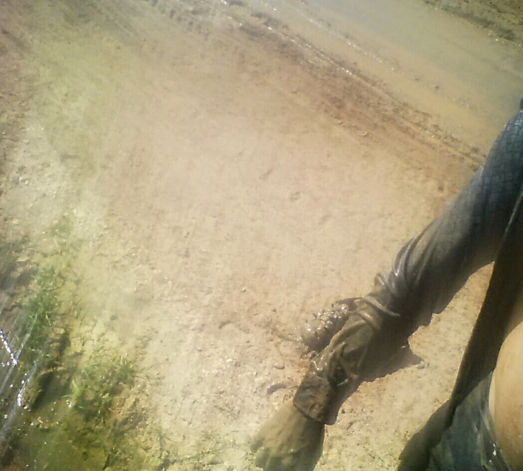 In a moment of cycling hubris, I attempt to ride a narrow dirt path up a small embankment, and around a pond spanning the entire width of the dirt road, up onto a cow pasture. I stall out on the ascent, and when I go to plant my right foot, it’s too far below my wheels, on too mushy of ground to keep me and my bike from toppling over into what turns out to be complete mush. The mush swallows my right leg up to just above the knee and my right arm up to bicep. I untangle myself from the bicycle which is in the process of also being swallowed, and in doing so, volunteer my left foot to the mush monster. I free my arm then push my bike up onto the embankment, giving even more of my sandal laden feet and legs over to the mush. When I’ve pushed my bike up such that it’s pedals and handlebars are engaged in relatively dry sod, I use it to pull myself upwards in a manner similar to how I’ve read one should free themselves from quicksand. I slowly pull my left, shallower sunk leg out, barely retaining its sandal. A lost sandal means going barefoot on metal pedals that would not be kind to an unprotected sole, so as I remove and safely put aside the left sandal I contemplate my options for removing the deeply sunk right leg and sandal. I re-submerge my left leg, barefoot, and shift all my weight to it while wiggling the right leg, foot, and sandal. There’s enough suction that it’s clear that the right sandal is not coming out with the right foot, but I’ve loosened up the mush enough around the right leg that it’s ready to come out of both sandal and muck. The right sandal had already succumbed to a pulled heel strap when fording a creek a few days earlier, and it would be a few more days until I found a cobbler to fix the sandal. The pair was purchased hastily from a Target in downtown Seattle for $25 just before leaving. I pull my foot up as swiftly as I can manage, and then plunge my right arm into the quickly collapsing hole just in time to get a couple of fingers around a strap on the sandal. Shoulder deep in muck, I wiggle the sandal and slowly pull it out.