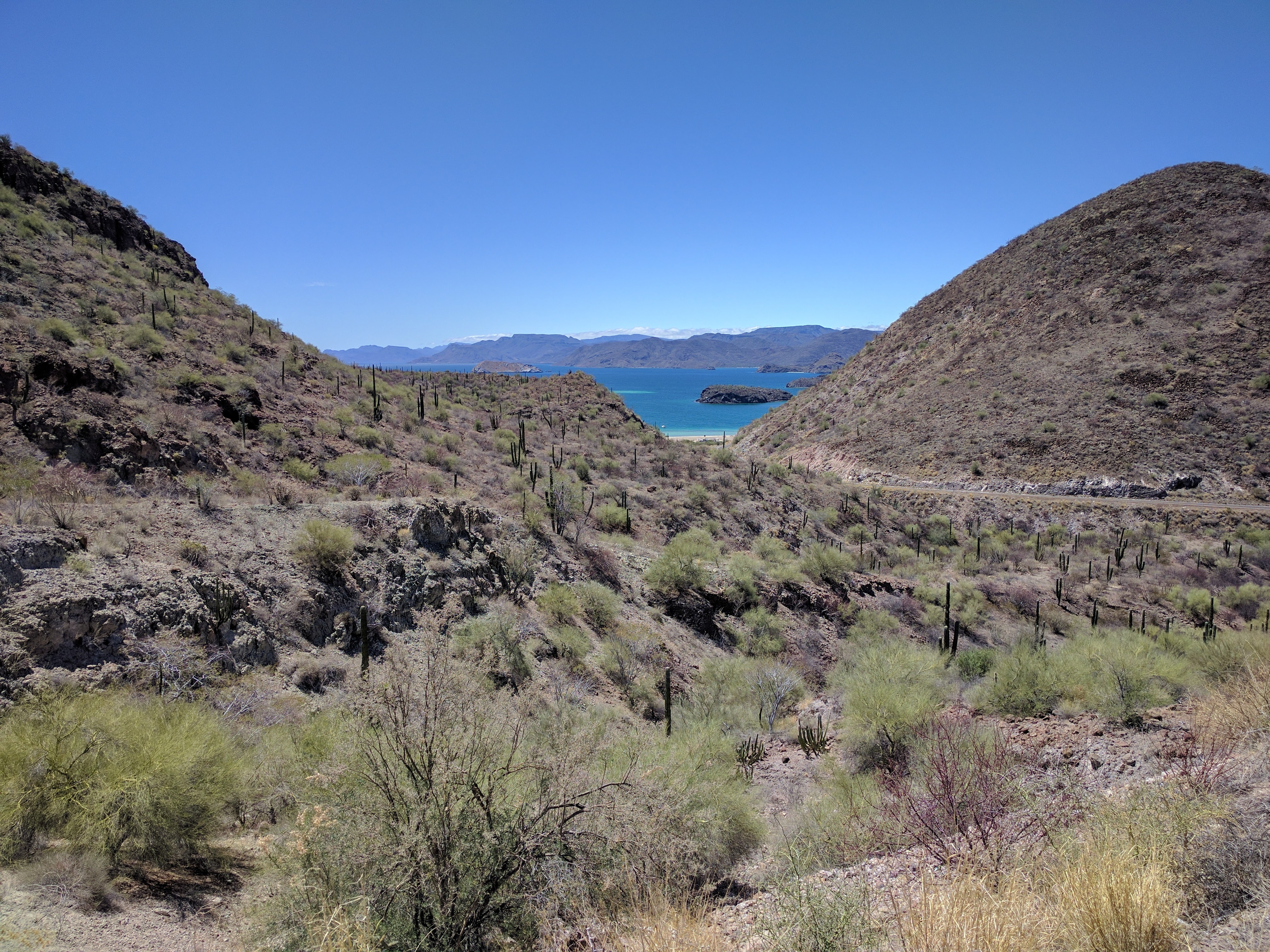The safety. The roads here are narrow, but the motorists are almost invariably happy to slow down as needed to let oncoming traffic pass in order to give us a very wide berth. I “take” the lane if/as needed, and Hartley has his road noodle. Ever since we’ve been sticking mostly to the highway (El Rosario onwards), the traffic is very sparse. Typically 5-10 minute pockets of no cars between clusters of vehicles. When cars pass, they often have occupants beaming with smiles and waves.
