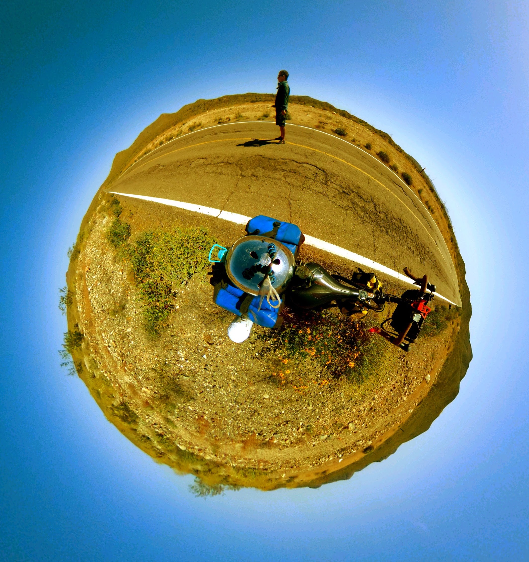 Riding hard. We’ve had good luck with the winds, and several 100km+ days, despite 3+ hour mid-day siestas and carrying 10+ liters of water. He’s a stronger rider than I am, but I’m the only one of us that ever points it out.