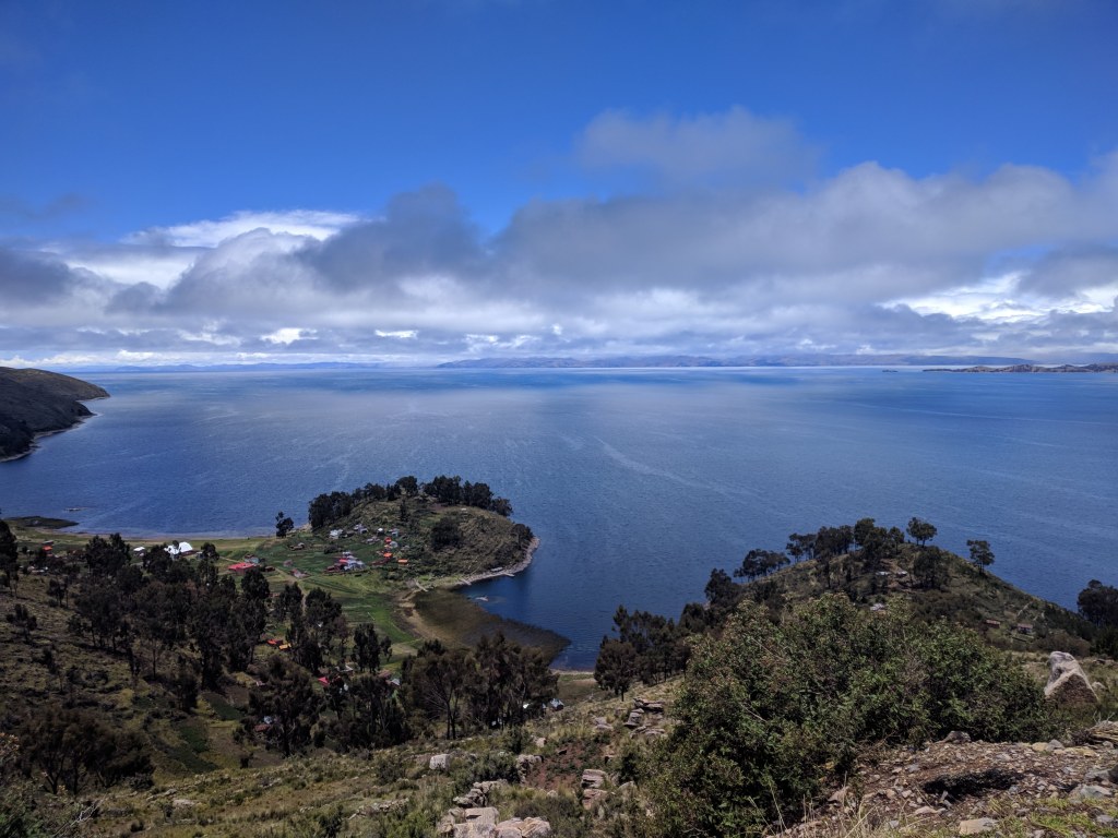 At 10am, a half hour before checkout, the rain has almost completely subsided and I head out. At first, the pedaling seems to trigger the acute cramping, but after patiently pushing along for about 5 minutes of it, it goes away completely. I have no idea, really, of what exactly is going on in my gut, but in as much as I have a faith in any thing, I have faith in the subconscious interactions of my major components: guts and brain. This time yesterday, pushing up the hill out of Copacabana seemed the furthest thing from possible, never mind enjoyable. Now, I feel strong and exhilarated to be pulling out of the misty, lakeside resort town. It’s come maybe a bit later for me than it does for others, but I’m discovering how easy life can be if you just have patience, for the weather outside, the weather in your digestive biome, even the weather in your mind. Surely there are times to fight against currents outside of your control, but maybe these are times are exceptions to a rule.